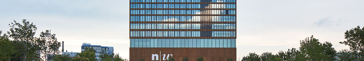 Über das Bibliothekgeschoss spannt sich ein dem Brückenbau entlehnter Mittelreiter auf dessen Seiten zwei Lichthöfe über neun weitere Stockwerke in die Höhe wachsen. Die zwölfte Etage bietet unter anderem eine Lounge mit grandiosem Weitblick und die Möglichkeit für einen Rückzug auf dem versteckten Dachgarten.